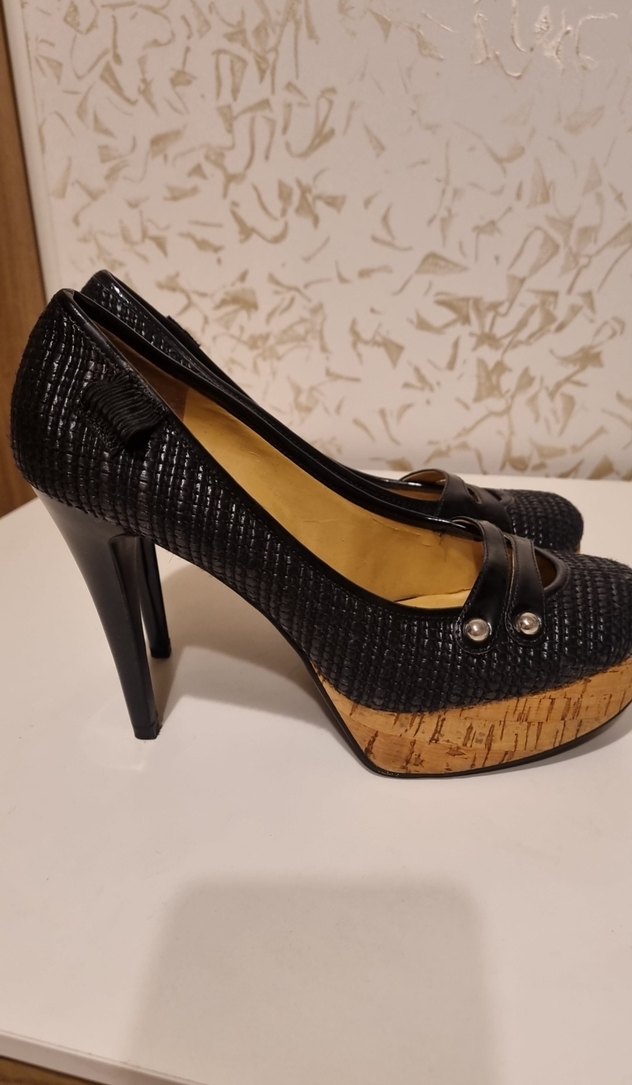 Siyah yılan desenli platform topuklu stiletto, tokalı detaylı ve mantar dokulu platforma sahip. Romantik gece için uygun. fotoğrafta gözüken bilekte ki ufak lastiklere ortama göre cicek taşlı bros takilabilir