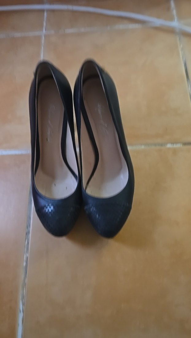 Siyah yılan desenli, tokalı, kauçuk malzemeden stiletto topuklu kadın ayakkabısı. Minimalist gotik tarzıyla ofis kullanımına uygundur.