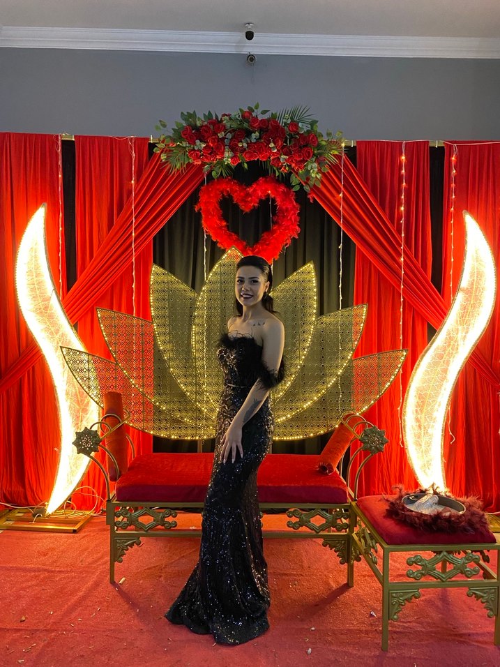 Siyah yılan desenli, straplez ve askılı kollu, vücuda oturan uzun abiye elbise, drapeli detaylarla cesur parti şıklığı sağlar.