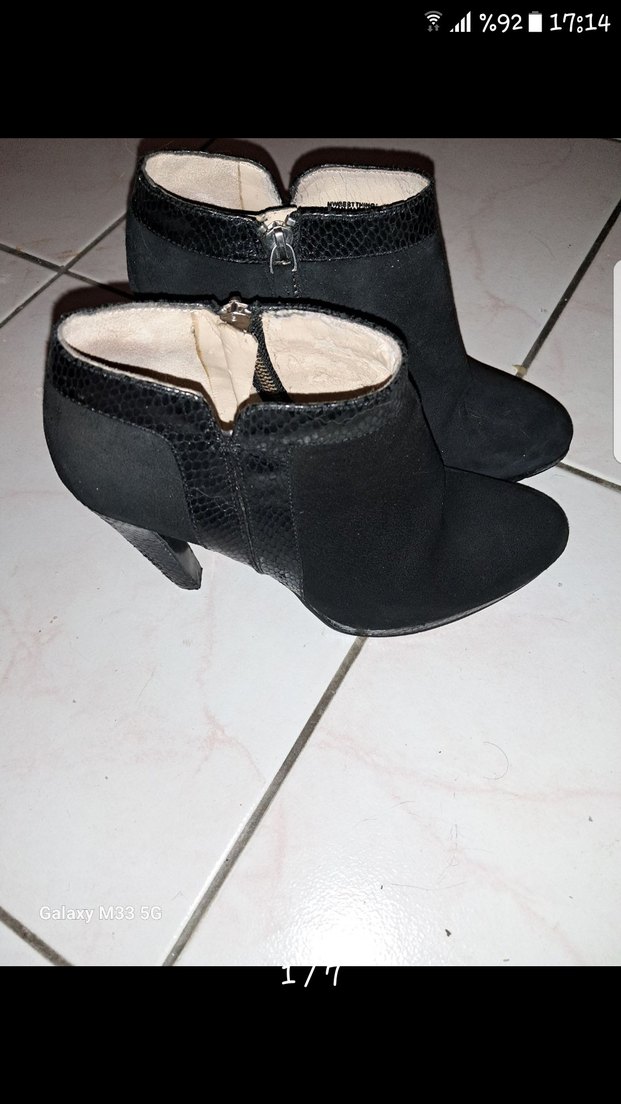 Siyah Yılan Desenli Süet Topuklu Kadın Bot