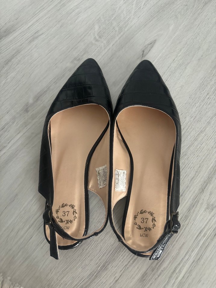 Siyah yılan desenli, tokalı kayışlı, lastik malzemeden 37 numara kadın topuklu ayakkabı.