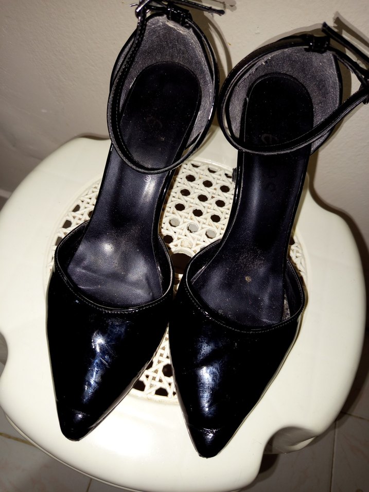 Siyah yılan desenli, tokalı stiletto topuklu ayakkabılar. Kauçuk malzemeden yapılmış, gotik klasik tarzda romantik akşamlar için uygundur.