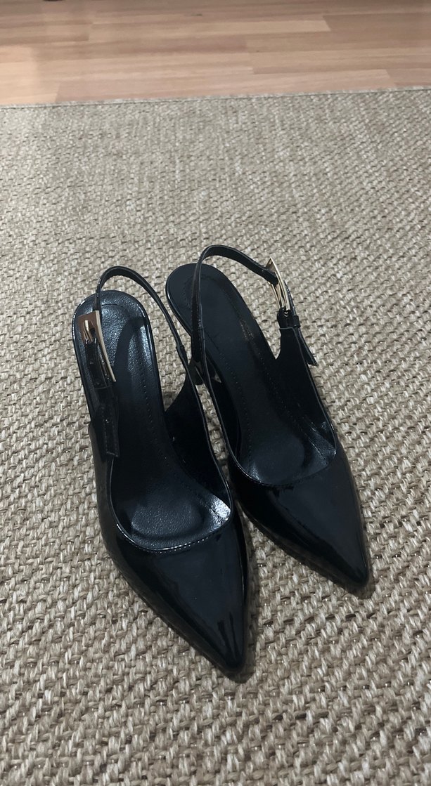 Siyah yılan desenli, tokalı bantlı stiletto topuklu ayakkabı. Ofis kullanımı için uygun modern klasik tasarımda, kauçuk malzemeden.