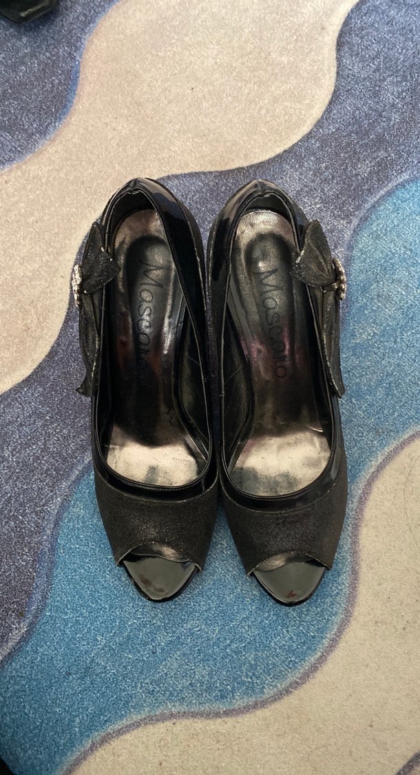 Siyah Yılan Desenli Tokalı Stiletto Topuklu Ayakkabı