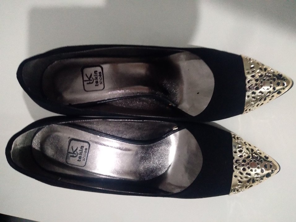 Siyah yılan desenli, tokalı stiletto topuklu kadın ayakkabısı. Kauçuk malzemeden yapılmış, ofis kullanımı için uygun, gotik ve klasik zarafet stilinde.