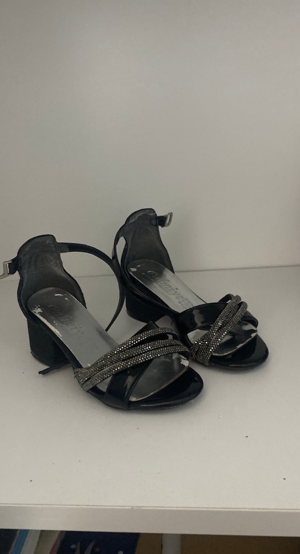 Siyah Yılan Desenli Tokalı Topuklu Ayakkabı