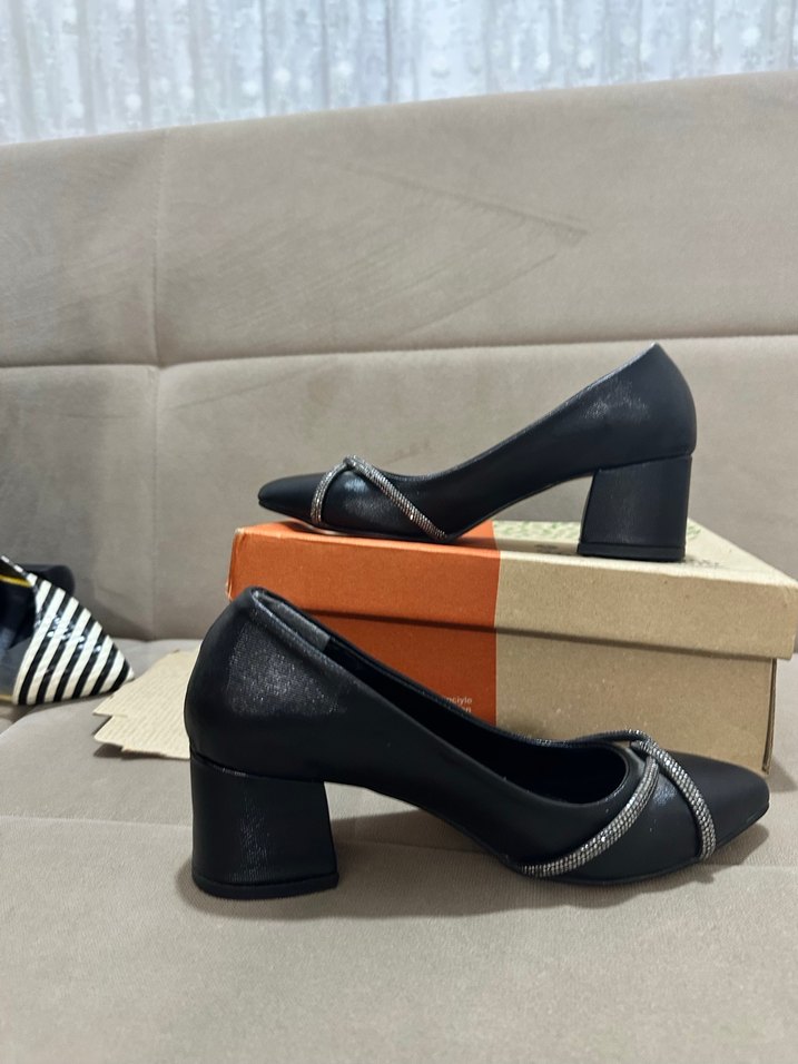 Siyah Yılan Desenli Tokalı Topuklu Kadın Ayakkabı