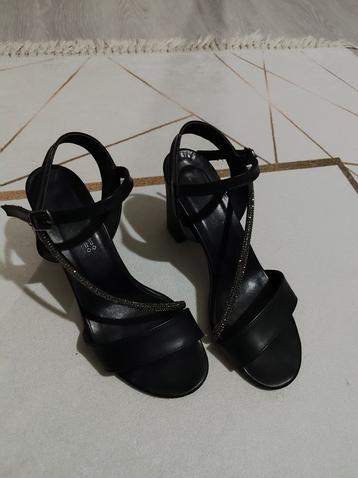 Siyah Yılan Desenli Tokalı Topuklu Kadın Ayakkabı