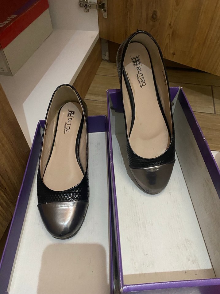 Siyah Yılan Desenli Tokalı Topuklu Kadın Babet