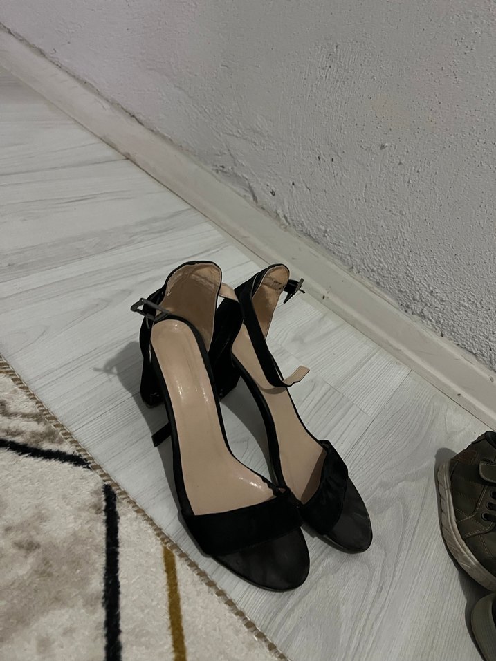 Siyah yılan deseni ve toka detaylı, ince topuklu kadın ayakkabısı. Minimalist goth tarzında, klasik ve romantik bir hava taşıyor. Kauçuk malzemeden üretilmiştir.