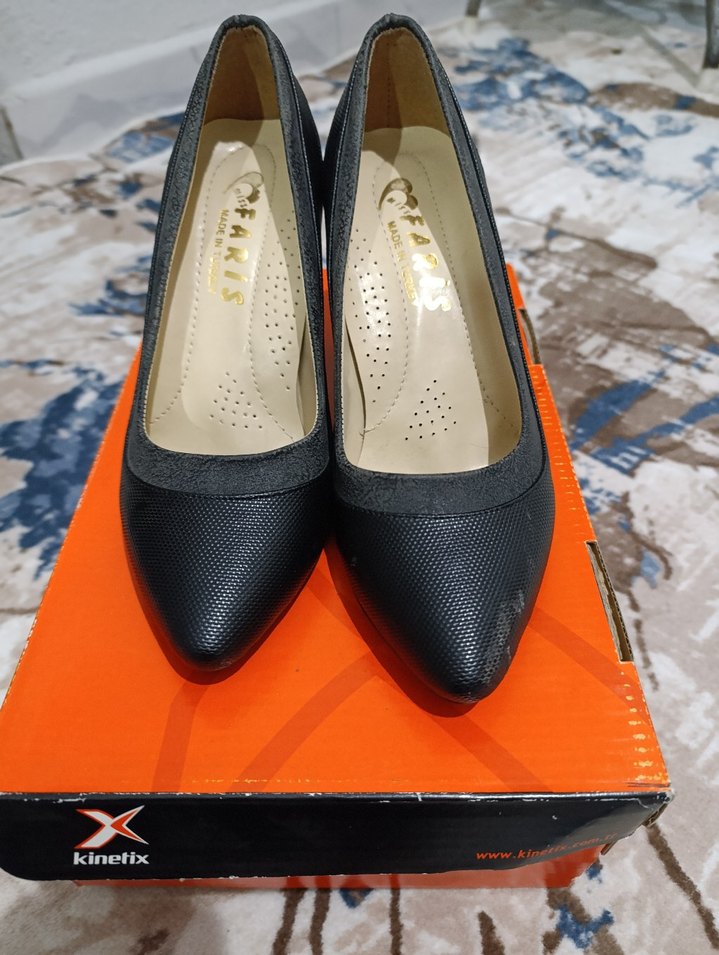 siyah yılan desenli stiletto, lastik malzemeden üretilmiş, pileli detaylara sahip günlük iş stiline uygun topuklu ayakkabı.