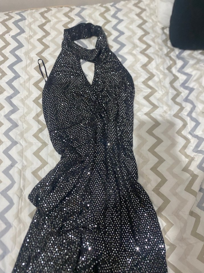 Siyah yılan desenli abiye elbise, V yakalı ve askılıdır. Uzun ve drapeli tasarımıyla partiler için şık ve gotik tarzda bir seçenektir.
