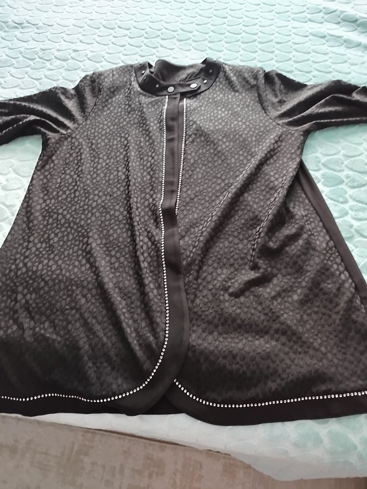 Siyah yılan desenli, uzun kollu ve boğazlı, fermuarlı uzun kadin takim Sentetik kumaştan, gotik tarzda ve günlük kullanıma uygun. uzun kollu elbisesi ustune hırkası ile ikili takim