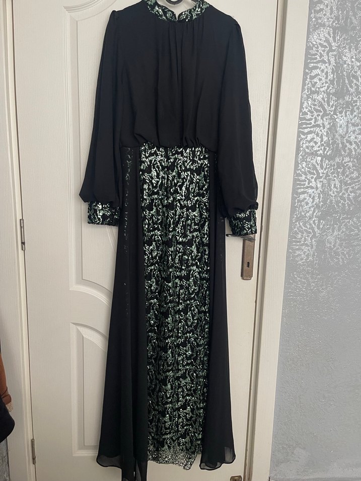 Siyah renkte, yılan desenli paneli olan, uzun kollu ve yüksek yakalı, bol kesim abiye elbisedir. Düğünler için uygundur.