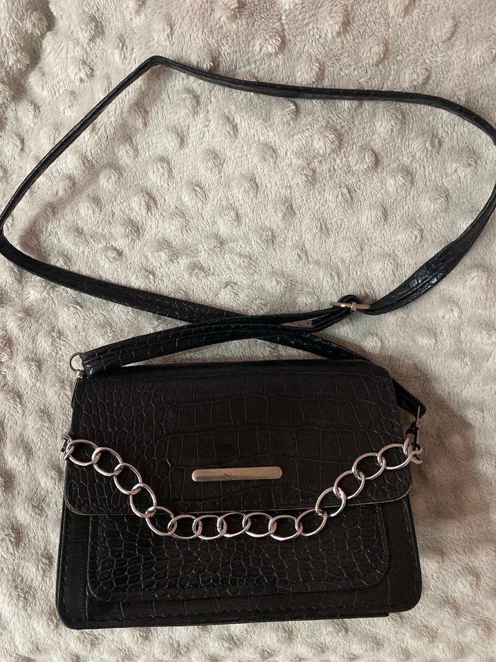 Siyah Yılan Desenli Zincirli Deri Çanta