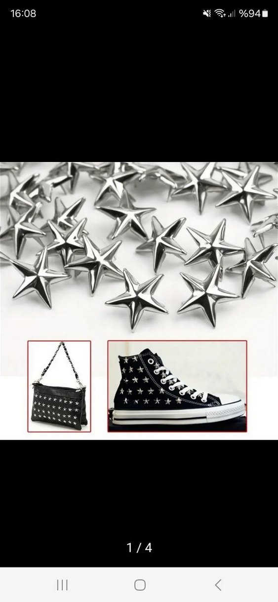 Gümüş yıldız işlemeli siyah punk tarzı çanta, zincir askılı ve parlak detaylara sahip. Cesur bir görünüm sağlar. ⭐