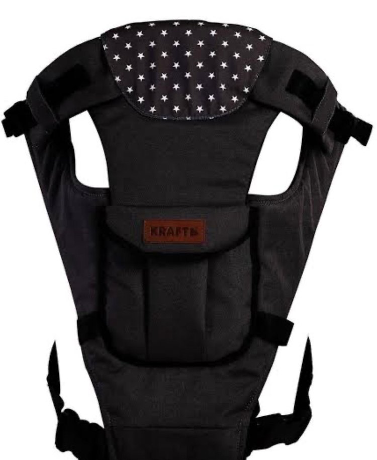 Ayarlanabilir kayışlara ve rahat destek sağlayan siyah yıldız desenli bebek taşıyıcı. ⭐