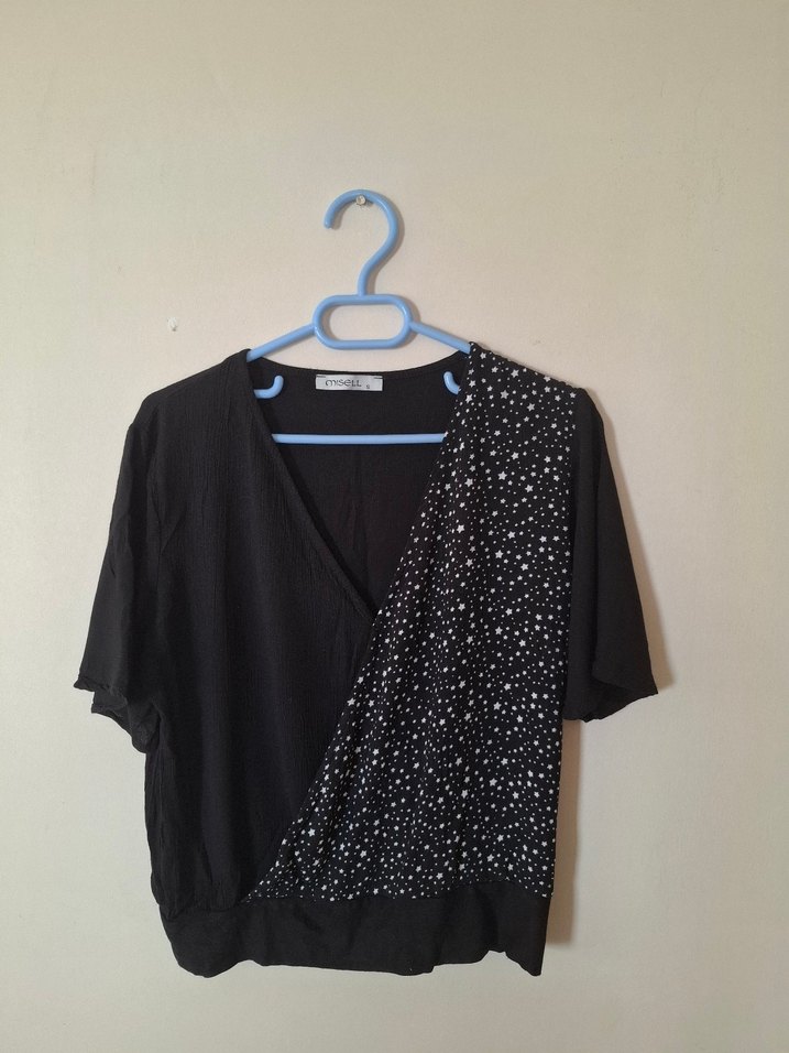 Siyah yıldız Desenli Mini Kadın Bluz