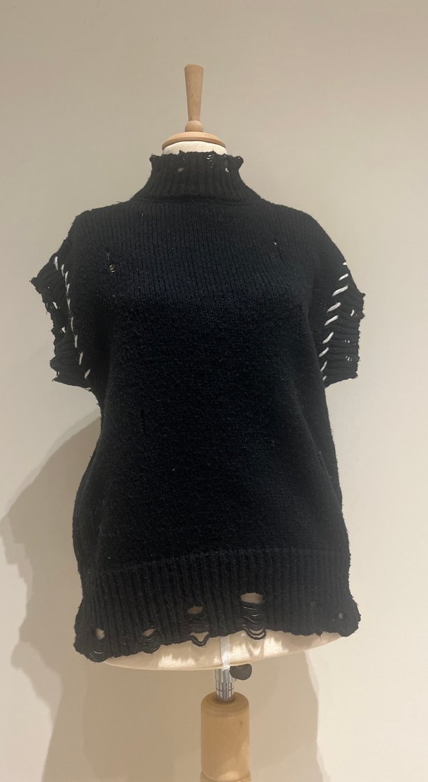 Siyah renkli, yüksek yakalı, örgü kumaştan yapılmış, kolsuz ve bol kesim bir süveter. Gotik tarzda yıpranmış detaylara sahip, midi uzunluktadır.