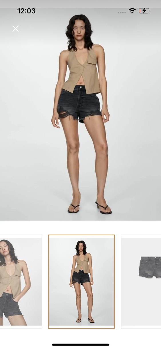 Düğmeli, yırtık detaylı siyah mini denim şort, rock punk tarzı için uygun, sıkı kesim. Mango 34 beden cok iyi durumda