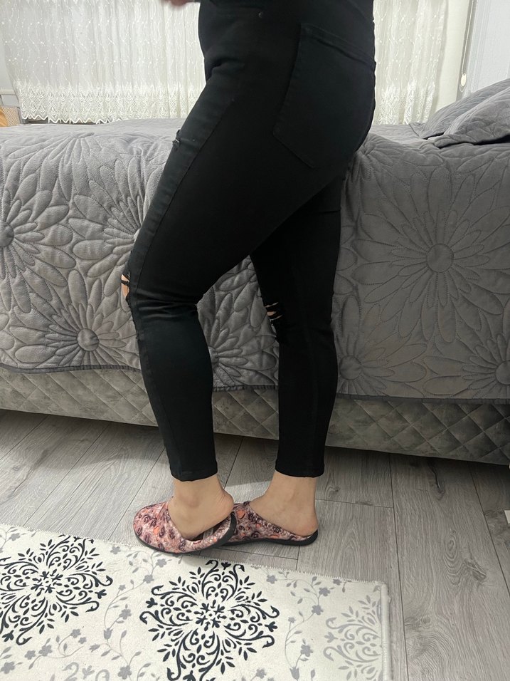 Siyah, rahat ve esnek kumaştan yapılmış, normal boyda ve dar kesim jean günlük kullanım için uygundur. Hiç giyilmedi sadece fotoğraf çekmek için giyildi