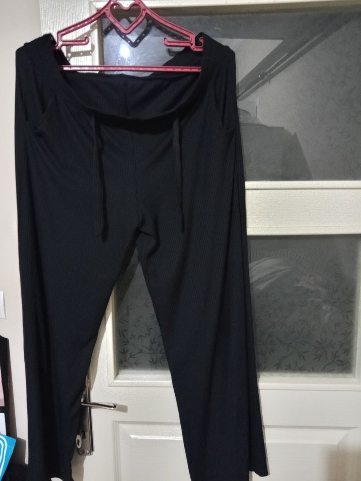 Siyah, yırtmaçlı ve midi boyda, şık kesimli kadın kumaş pantolon. Günlük kullanıma uygun, sentetik kumaştan üretilmiştir.