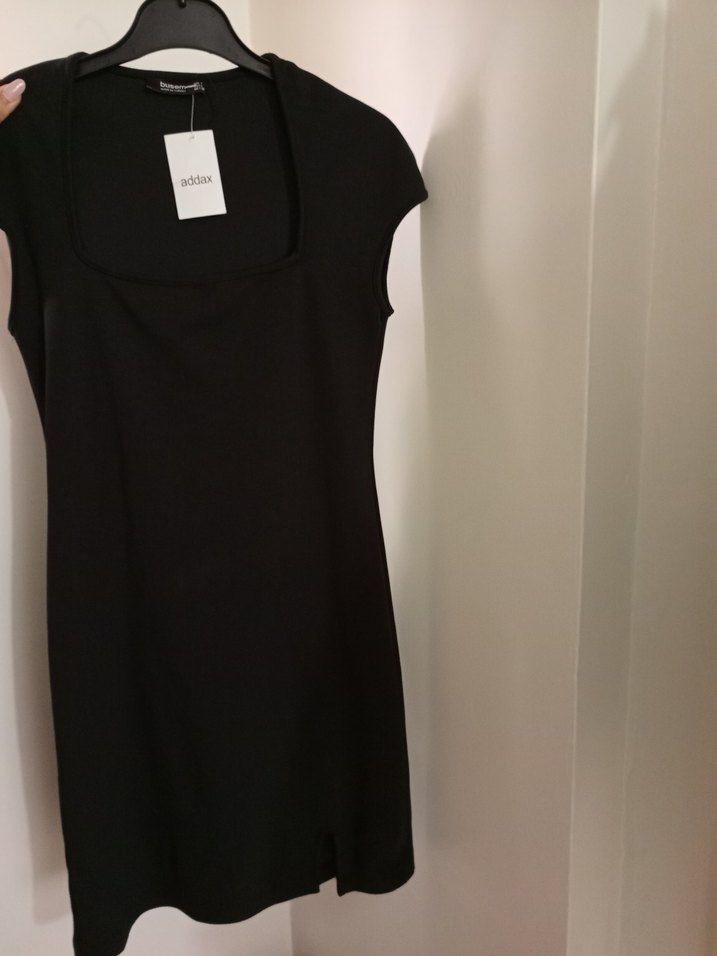 Siyah mini elbise. Sıfır kol ve yırtmaç detaylı. Özel günlerde kullanılabilir şık bir kumaşı var. Etiketli ürün hiç giyilmedi.