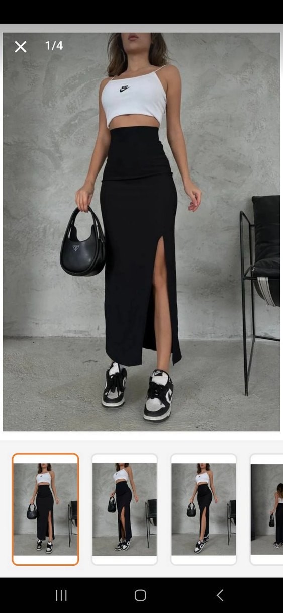 Siyah Yırtmaçlı Uzun Dar Etek