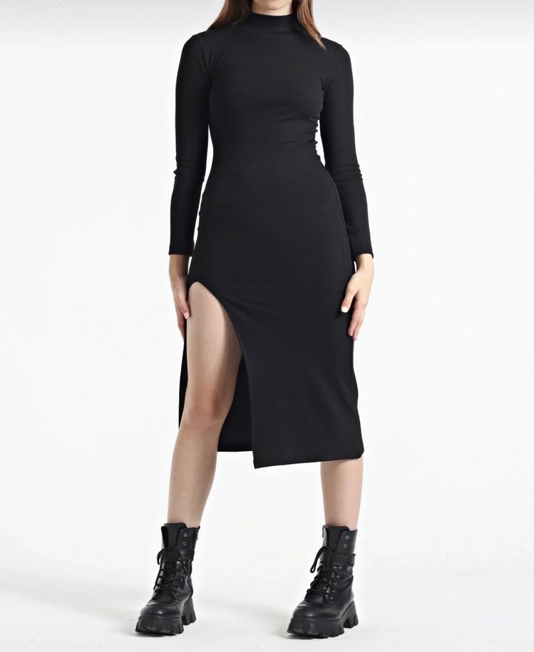 Siyah Yırtmaçlı Uzun Gotik Elbise