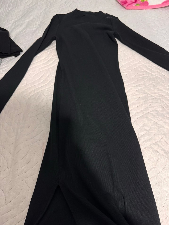 Siyah Yırtmaçlı Uzun Kollu Dar Kesim Elbise