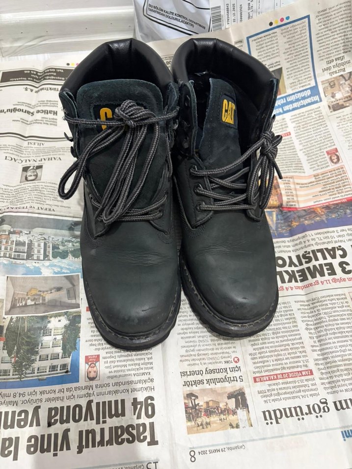 Siyah yüksek topuklu, çift tokalı kauçuk kadın botu. Grunge punk ve streetwear tarzına uygun, günlük kullanım için ideal.