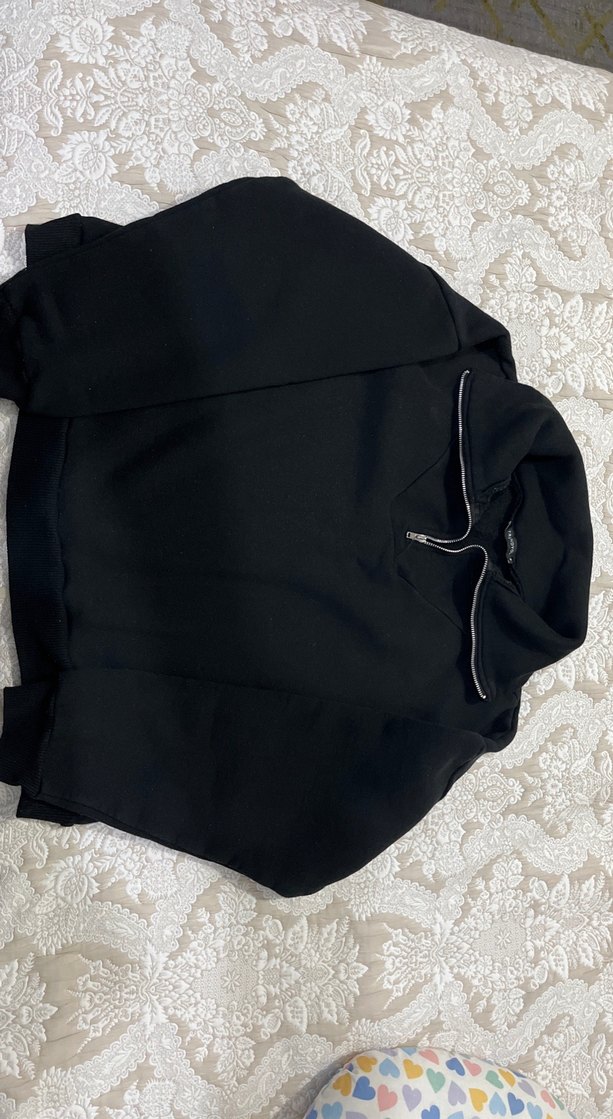 Siyah renkli, yüksek yakalı ve fermuarlı kadın sweatshirtü, uzun kollu ve bol kesimdir. Koyu tonlarda, midi boyunda ve gündelik kullanım için uygundur.