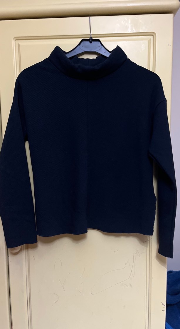 Siyah renkte, yüksek yakalı ve uzun kollu kadın sweatshirtü. Rahat, normal boyda ve yumuşak, sıcak dokusu ile günlük kullanıma uygundur.