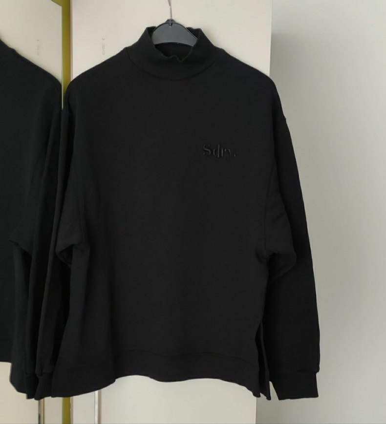 Yüksek yakalı, uzun kollu ve bol kesimli siyah sweatshirt, yumuşak ve sıcak dokulu kumaştan üretilmiştir. Desensiz tasarımı günlük ve sokak stiline uygundur.