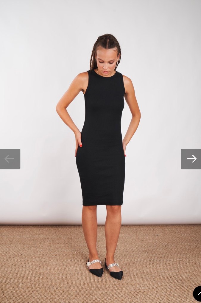 Siyah Yüksek Yakalı fitilli Kolsuz Kalem midi Elbise