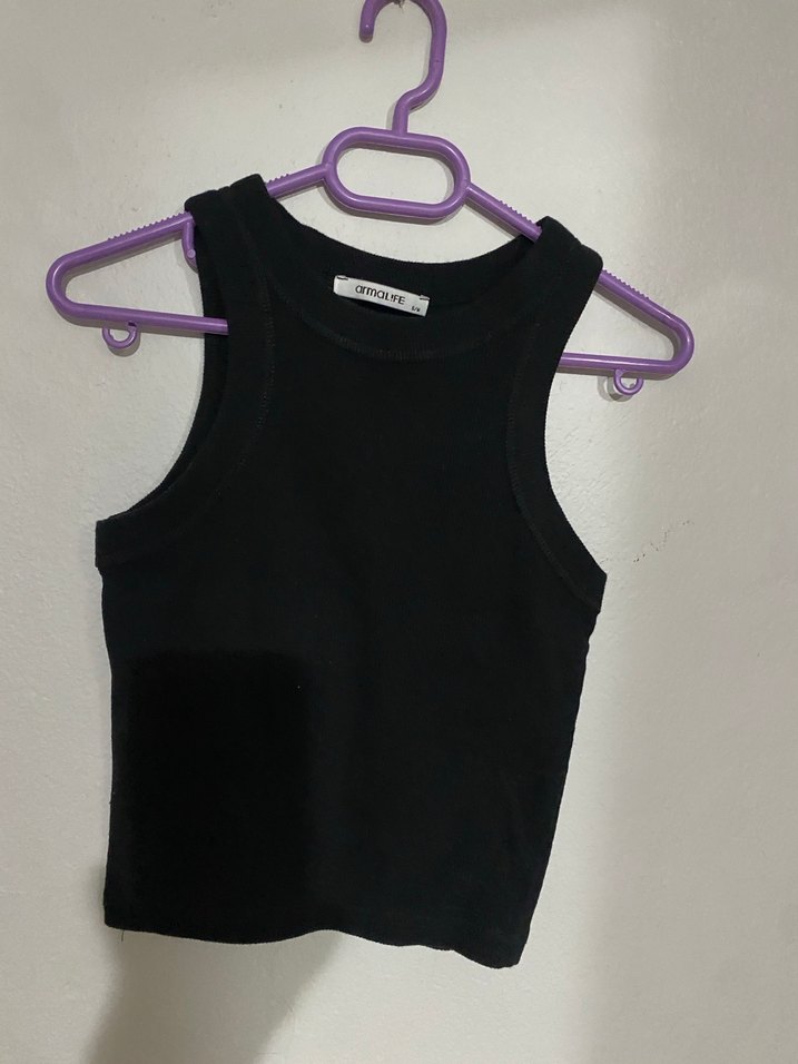 Yüksek yakalı, kolu olmayan siyah kadın atlet, vücuda oturan kesimi ve yumuşak sentetik kumaşıyla minimalist sokak tarzı sunar. S/M beden
