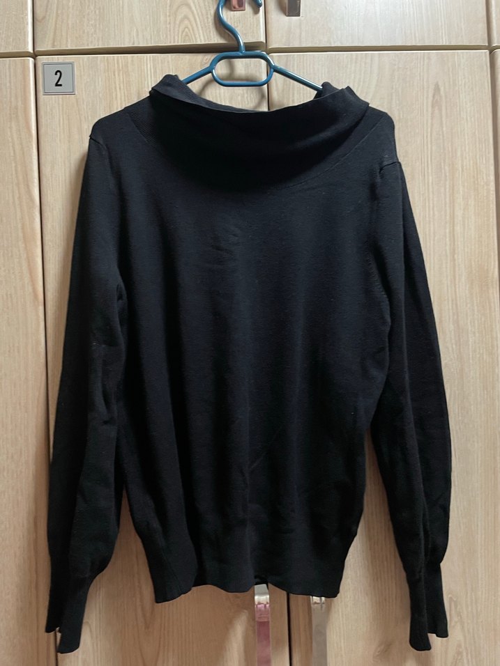 Yüksek yakalı, uzun kollu ve vücuda oturan siyah kazak, yumuşak ve sıcak kumaştan üretilmiştir, günlük kullanım için uygundur.