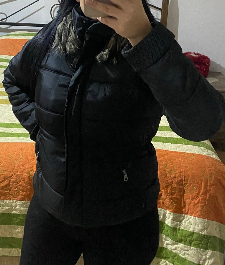 Siyah, yüksek yakalı, kürklü detaylı kadın kışlık mont. Yumuşak ve sıcak kumaştan, uzun kollu ve midi boyda, dış mekan için uygun. ❄️S beden M bedenede uyumlu