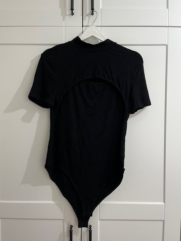 Siyah, kısa kollu, yüksek yakalı ve vücuda oturan tişört, günlük kullanıma uygun, şık ve rahat bir görünüm sunar.