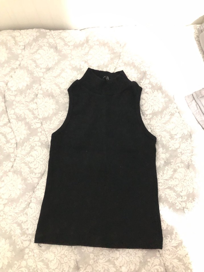 Siyah Yüksek Yakalı Kolsuz crop