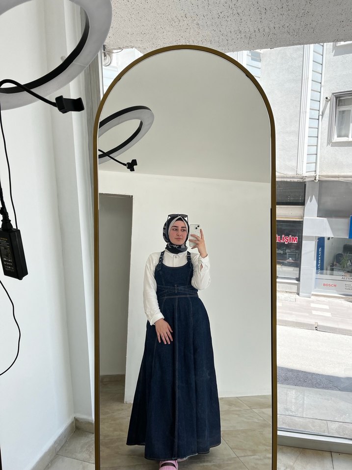 Siyah kolsuz denim elbise, yüksek yaka ve bol kesimiyle günlük kullanıma uygun, sade ve şık bir görünüme sahiptir. Minimalist ve mütevazı tarzlar için idealdir.