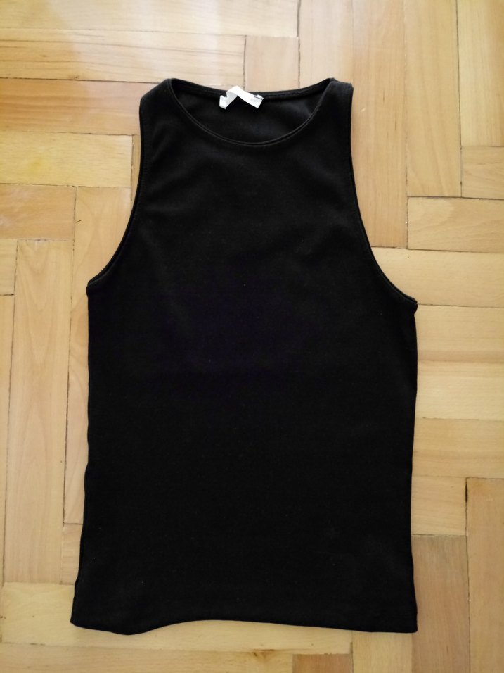 #Ecrou #marka #36 #S beden #siyah renk #halteryaka #likra-#pamuk karışımı #yazlık #tişört.Kullanıldı.Etiket içeriği ve boy ölçüsü görsellerde mevcut.Arka etek kısmında etek dikişi sökük.Dikilirse sorunu kalmaz.Renkte solma yok.siyah renkli, yüksek yakalı ve kolsuz kadın atlet, düz ve vücuda oturan kesimdedir. Günlük sokak modasına uygun, sentetik kumaştan üretilmiştir.
