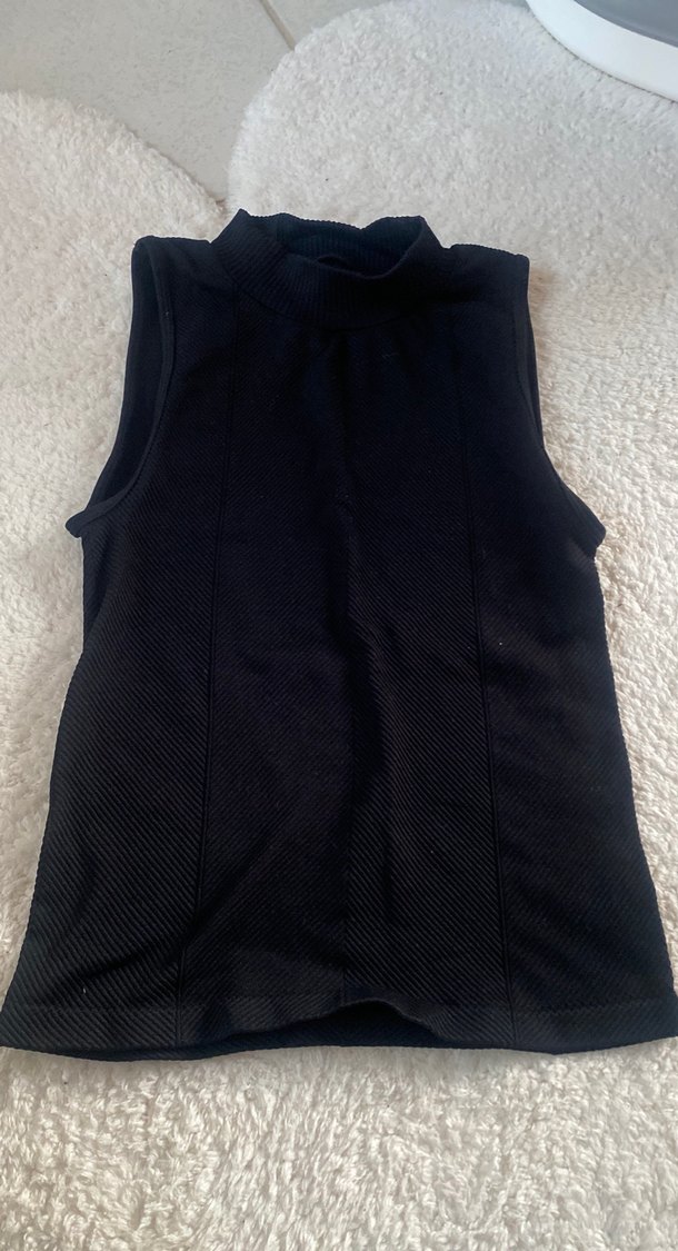 Kolsuz, yüksek yakalı ve vücuda oturan siyah bluz. Beden M fakat sıkı yapıda bir kumaş S bedenler için ideal olacaktır. Herhangi bir deformasyonu yok,beden uymadığı için satışa koydum.