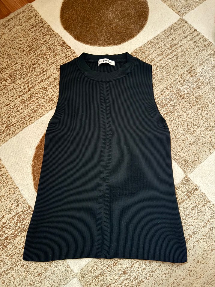 Siyah Yüksek Yakalı Kolsuz Süveter top tişört