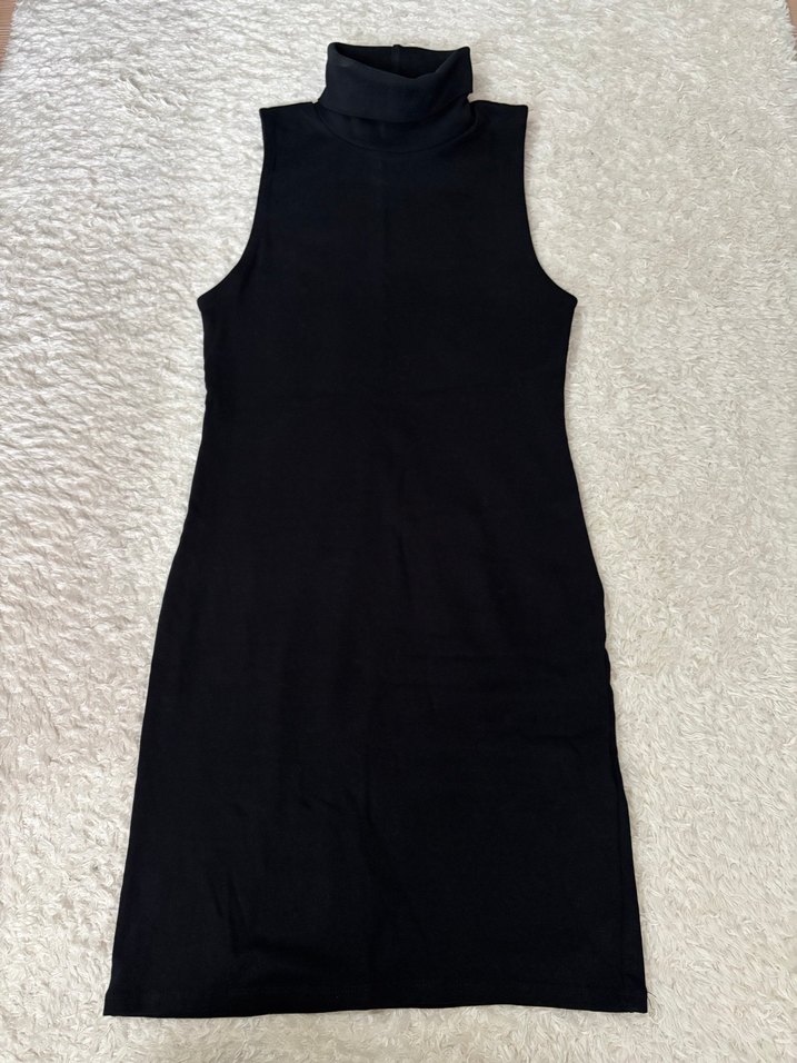 Siyah Yüksek Yakalı Kolsuz Triko Elbise