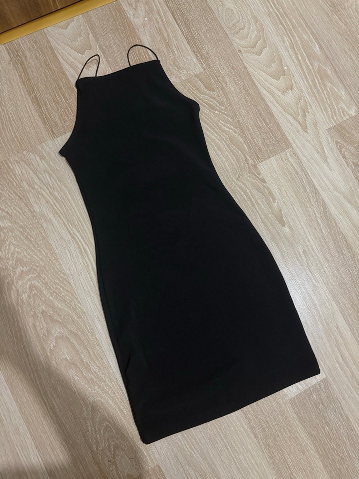 Siyah, yüksek yakalı ve midi boy, kolsuz triko elbise. Yumuşak sentetik kumaştan, minimalist ve goth tarzda, günlük kullanıma uygun şık parça. Bedeni s-m esnek ve vücudu saran bir yapısı vardır