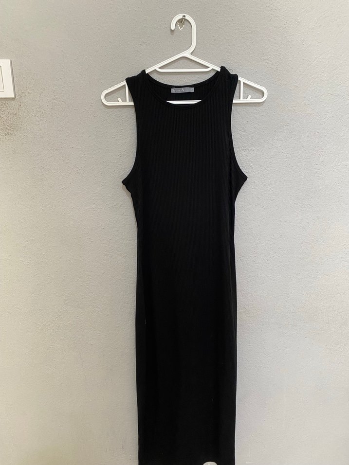 Siyah Yüksek Yakalı Kolsuz Uzun Elbise