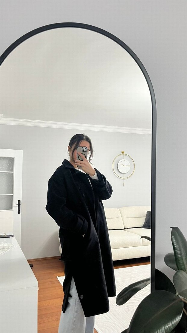 Siyah Yüksek Yakalı Midi Kaşe Kaban 38 beden oversize
