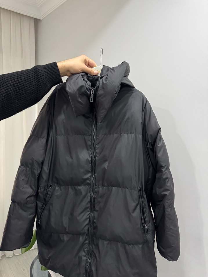 Siyah renkte, yüksek yakalı ve fermuarlı kadın kışlık mont. Uzun kollu, bol kesim ve midi boyda, sentetik kumaştan üretilmiştir. Sokak stiline uygun dış mekan kullanımı için ideal. ❄️