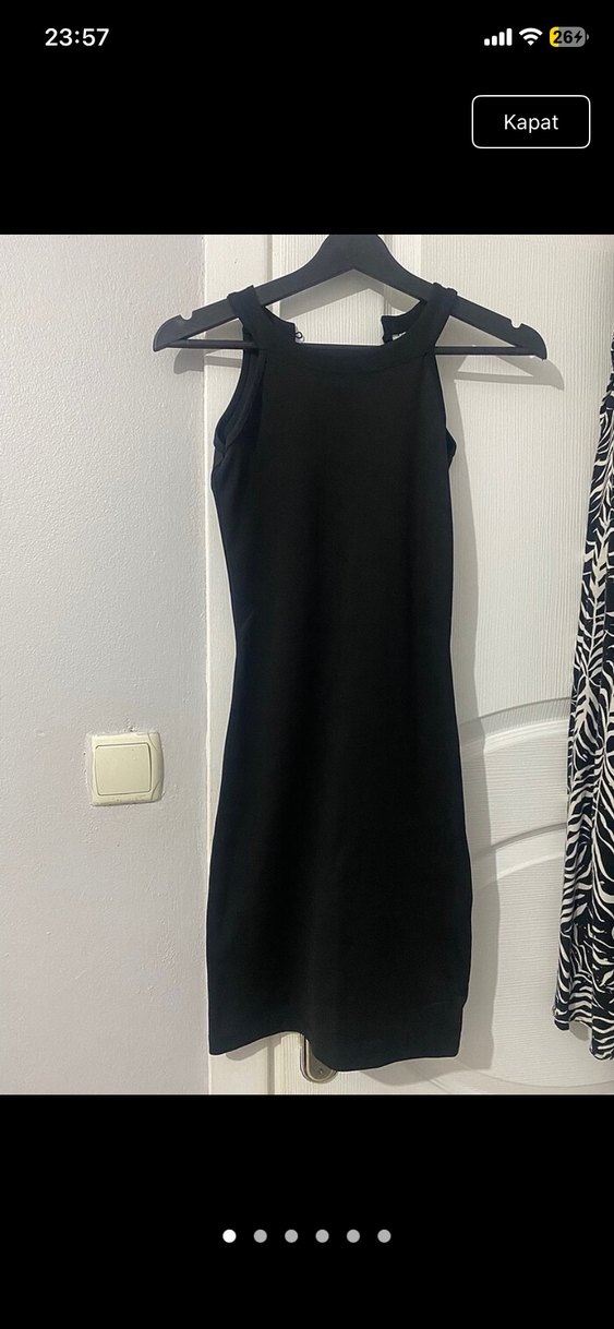 Siyah Yüksek Yakalı Mini Siyah Elbise